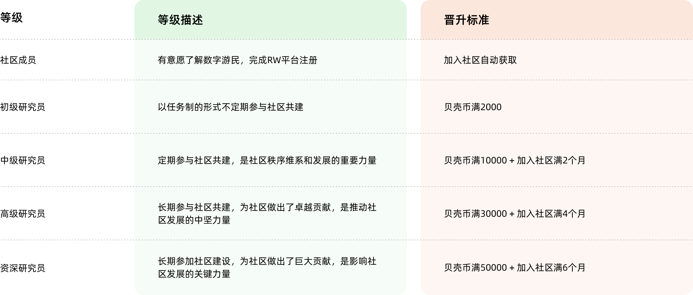 不同的共建者等级对应不同的社区权限和福利,每个人都能成为RW最重要的那个人